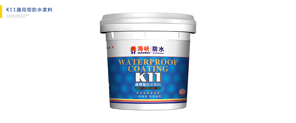 海峡K11通用型采用台湾独特防水技术工艺,综合了橡胶类材料良好的弹性和变形性能及无机材料耐久性好、强度高的特点。
